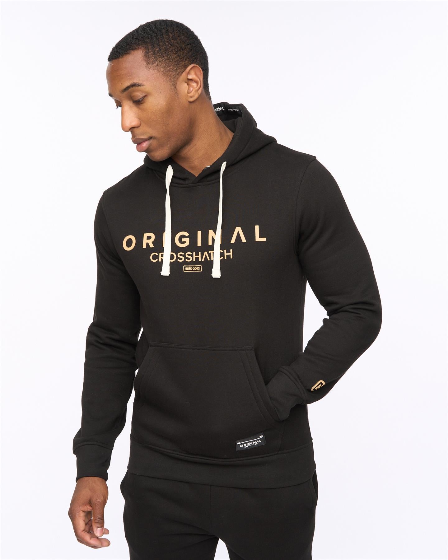 - Overhead hoodie with branded hood taping and chest print